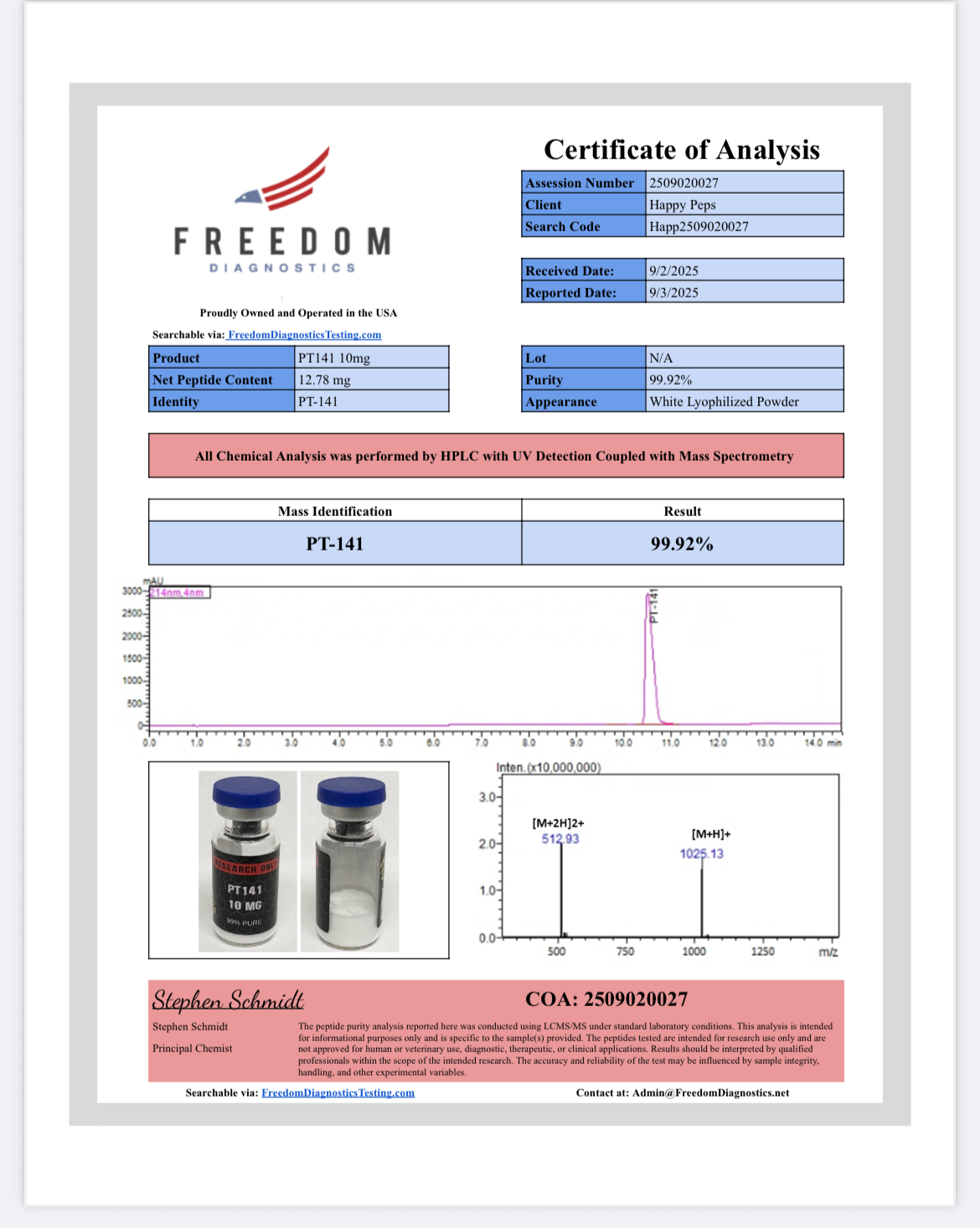 All products provided by HappyPeps, including PT-141, are sold strictly for laboratory research purposes only. These compounds are not intended for human or veterinary consumption, medical use, or diagnostic purposes. By purchasing, you acknowledge and agree that handling and use are restricted to qualified professionals in controlled research environments.