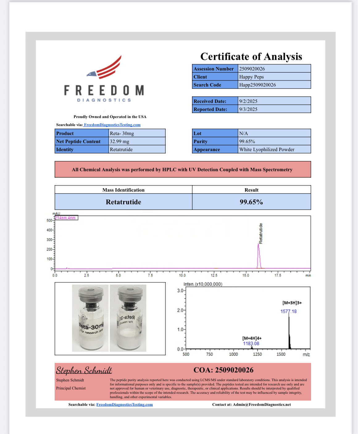 HappyPeps.com assumes no liability for the misuse of any product. These compounds are not approved by the FDA or any other regulatory agency for clinical use or personal application.